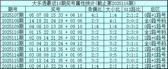 大乐透第2025116期开奖号码:02 06 16 22 29 + 08 12。前区奖号大小比为2:3,奇偶比为1:4,012路比为1:2:2,后区为2路+0路号。